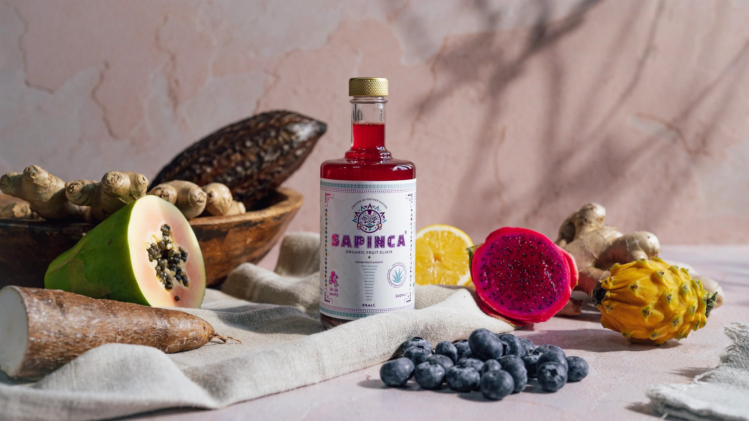 Kad sukurti SAPINCA, keliavome po visą pasaulį ieškodami naujų ingredientų. Šios kelionės metu kirtome Pietų Amerikos kalnus ir susipažinome su senosiomis kultūromis. Atradome ypatingų šaknų, apie kurias dar nebuvome girdėję – tokių kaip valgomasis verpstinas (yacon), galangalas, ašvaganda ir peruvinė pipirnė (maca). Taip pat atradome unikalius vaisius, tokius kaip maistinė juodmirtė (camu camu), acai uogos, raudonoji pitaja ir guarana.